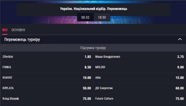 Мониторинг букмекеров на Нацотбор в Евровидение-2025 favbet.ua